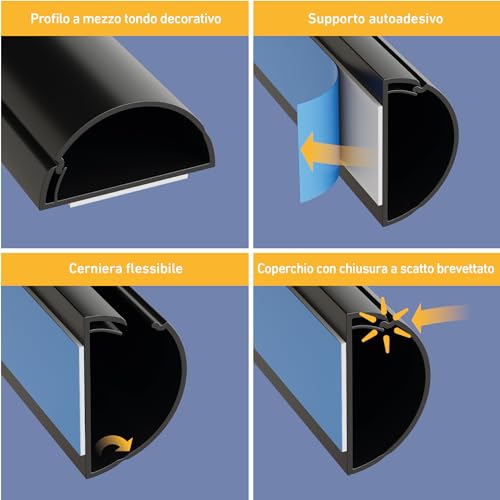 Passacavi D-Line - Profilo semicircolare per nascodere cavi su muri in maniera ordinata anche colorata per una rifinitura perfetta.