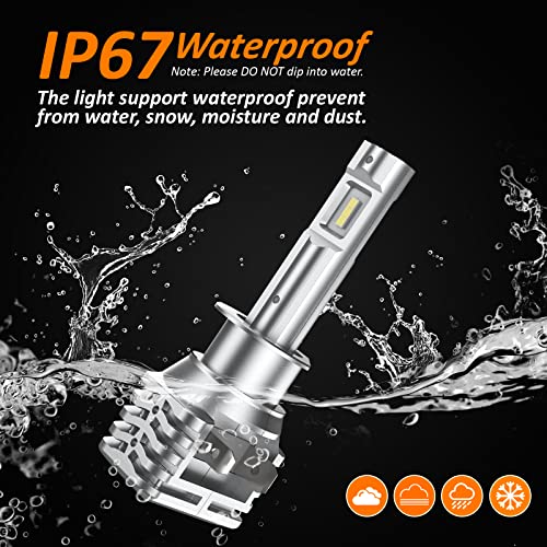【Massima qualità】: testato e approvato. lampade led H1 L'alloggiamento completo di alluminio aeronautico per impieghi gravosi resiste 5 volte più duramente che mai. Funziona con qualsiasi condizione atmosferica. IP67 impermeabile, resistente al calore, anticorrosione.