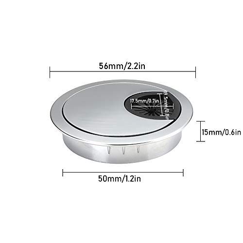 D-Orange 2 Pezzi Passacavo da Scrivania, Tappo Passacavi per Cavo, 50 mm Passacavo Rotondo, Cavo Grommet per Scrivanie, Uffici e Piani da Lavoro, Lega di Zinco, Argento