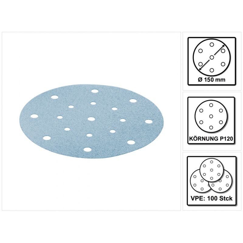 Dotazione: - 100x Festool STF D150/16 Disco abrasivo 150 mm P120 GR/100 Granat ( 496979 ) Descrizione prodotto: I dischi abrasivi sono adatti alla lavorazione dei più moderni sistemi di verniciatura e delle basi più dure. Sono particolarmente indicati per vernici VOC, materie plastiche, materiali per superfici solide e acrilici. Dati tecnici: Grana: P120 Contenuto della confezione: 100 unità Diametro: 150 mm