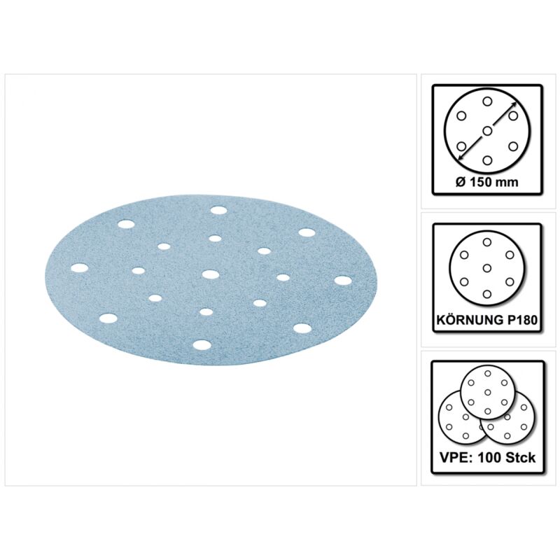 Dotazione: - 100x Festool STF D150/16 Disco abrasivo 150 mm P180 GR/100 Granat ( 496981 ) Descrizione prodotto: I dischi abrasivi sono adatti alla lavorazione dei più moderni sistemi di verniciatura e delle basi più dure. Sono particolarmente indicati per vernici VOC, materie plastiche, materiali per superfici solide e acrilici. Dati tecnici: Grana: P180 Contenuto della confezione: 100 unità Diametro: 150 mm