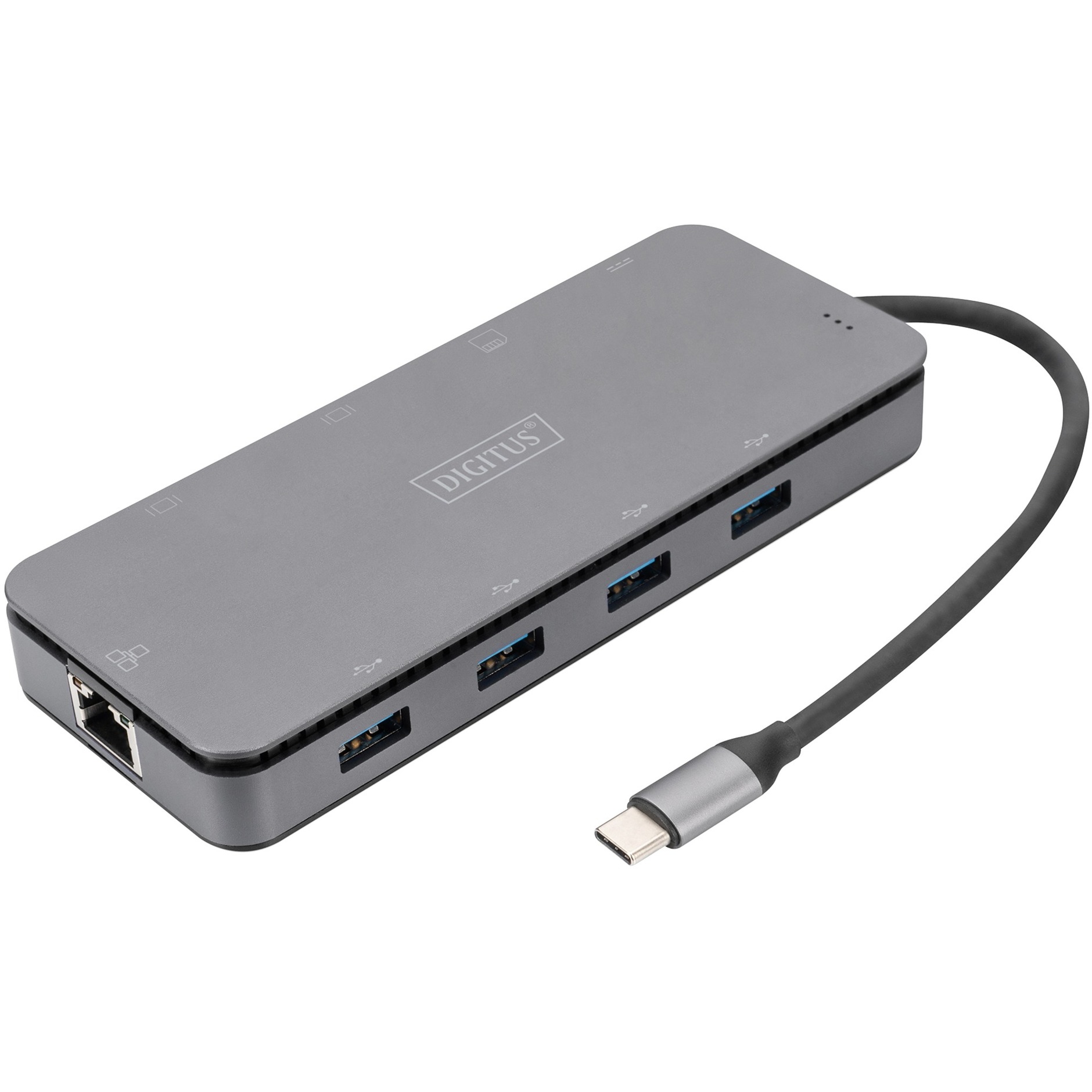 Oltre alle solite interfacce, come HDMI, VGA, USB-C, Card Reader o Ethernet, la docking station USB-C DIGITUS a 11 porte ha un alloggiamento con uno slot per schede SSD M.2 SATA / Key B. Qui, i dati possono essere memorizzati nella cache o memorizzati, ad esempio, per una presentazione. Con le porte HDMI e VGA, è possibile collegare 2 display aggiuntivi. 1 porta USB-C consente di caricare il notebook tramite Power Delivery. 4 porte USB 3.0 offrono spazio sufficiente per le periferiche in termini di opzioni di connessione.