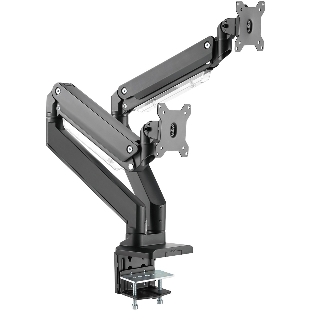 Con il supporto universale per monitor di DIGITUS, è possibile collegare comodamente un monitor di dimensioni 38,1 - 88,9 cm (15" - 35") alla scrivania bloccandolo. La funzione di sgancio rapido semplifica anche l''installazione del monitor. Il supporto VESA viene semplicemente inserito nel supporto corrispondente e scatta automaticamente in posizione. Senza troppi sforzi, è possibile allineare il monitor in base alle proprie esigenze e ruotarlo, inclinarlo o ruotare il monitor da soli, ad esempio per i monitor verticali. Il supporto della molla a gas integrata facilita la regolazione in altezza del monitor.