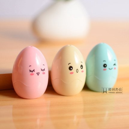Daaimi - Set di 3 temperamatite Kawaii a forma di uovo in plastica con foro singolo, colore casuale
