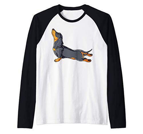 Dachshund Yoga Funny Namaste Spiritual Meditation Chakra Maglia con Maniche Raglan