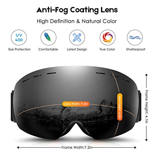 DADA-PRO Occhiali da Sci, Occhiali da Snowboard Uomo Donna Sopra Occhiali OTG Anti Fog Frameless Jet Snow, Occhiali da Sole con Protezione UV (Nero)