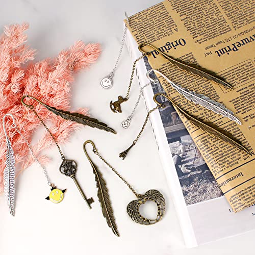 Stili multipli: ognuno dei nostri segnalibri antichi in metallo è appeso con pendenti metallici. Ogni ciondolo ha uno stile diverso, tra cui: torre di ferro, chiave, albero, fiore, foglie, pony, smiley bianco, smiley giallo, orologio. Una varietà di stili ti offre più scelte.