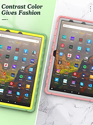Dadanism Custodia Compatibile con Tablet Fire HD 10(11ᵃ Generazione, Modello 2021) e Fire HD 10 Plus, Leggero Antiscivolo Antigraffi Cover in Silicone Protezione a 360 Gradi, Verde Giallo
