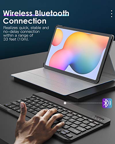 Dadanism Custodia con Tastiera Compatibile con Galaxy Tab S6 Lite(Modello 2020) 10.4" Tablet, Tastiera Bluetooth Wireless Staccabile, Case in PU Pelle - Blu Cielo Stellato