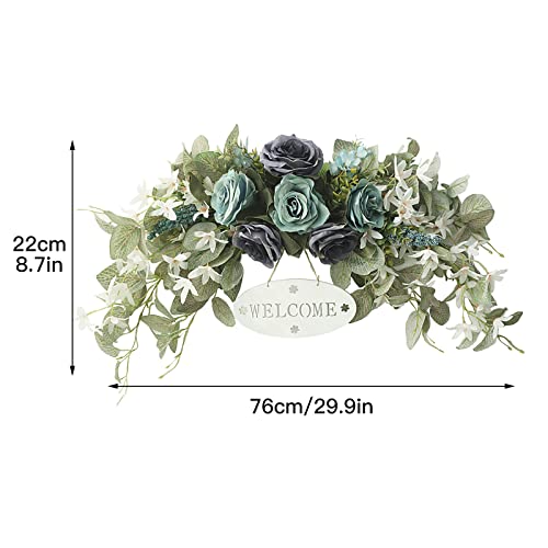 DADEA Decorazione artificiale con fiore di rosa, architrave da matrimonio, decorazione decorativa con cartello di benvenuto, foglie di eucalipto, rami grandi da appendere, verde, 75,9 x 22,1 cm