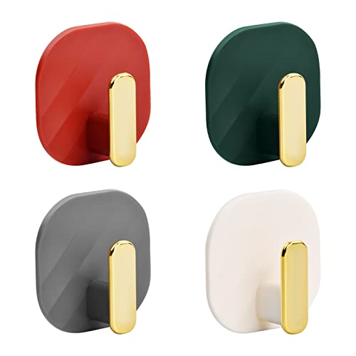 【Contenuto della Confezione】4 ganci adesivi in diversi colori, tra cui rosso, verde, bianco e grigio, ogni dimensione è di circa 5,3 cm x 5,3 cm x 1,5 cm.