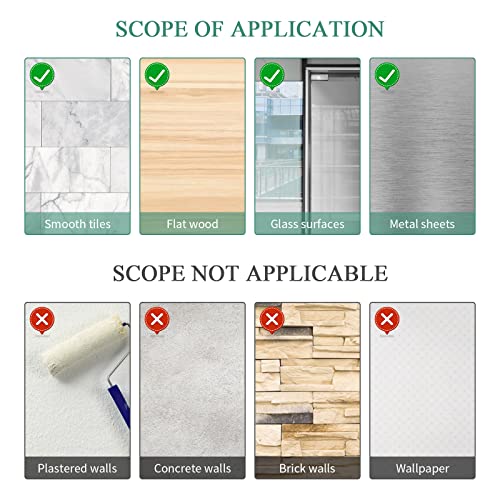 【Ampia Applicazione】Il gancio è adatto a tutti i tipi di superfici dure lisce, come piastrelle, vetro, legno, marmo, plastica, metallo, ecc., Perfetto per la tua camera da letto, bagno, cucina e ufficio. Non consigliato per pareti in calce, pareti in gesso o qualsiasi superficie ruvida che provocherebbe il distacco del gancio.