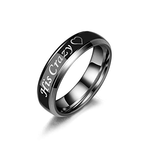 Daesar Anello Donna, Anelli in Acciaio Inossidabile Anello Donna Incisione His Crazy Nero Inciso Anello Misura 12