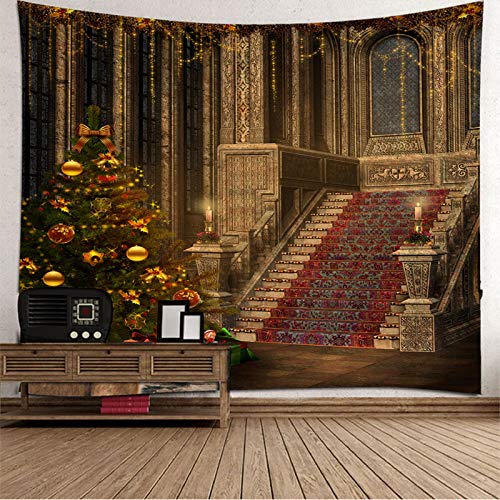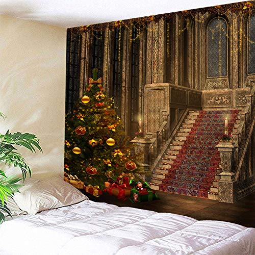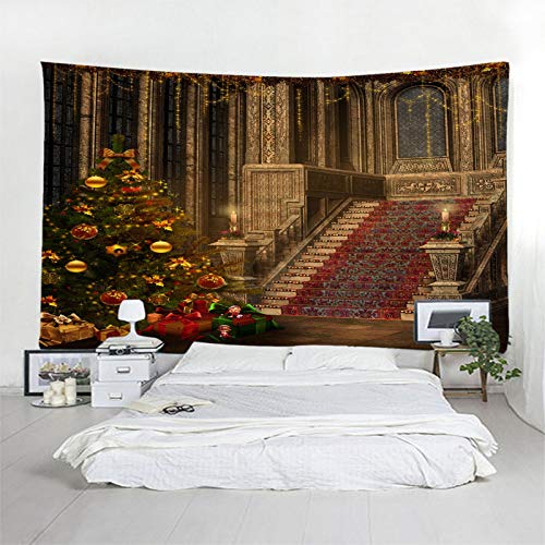 Daesar Arazzo da Parete Natalizi, Arazzo per Parete Albero di Natale e Scale Regalo Arazzi Camera da Letto Marrone Rosso Arazzo Poliestere 260x240CM