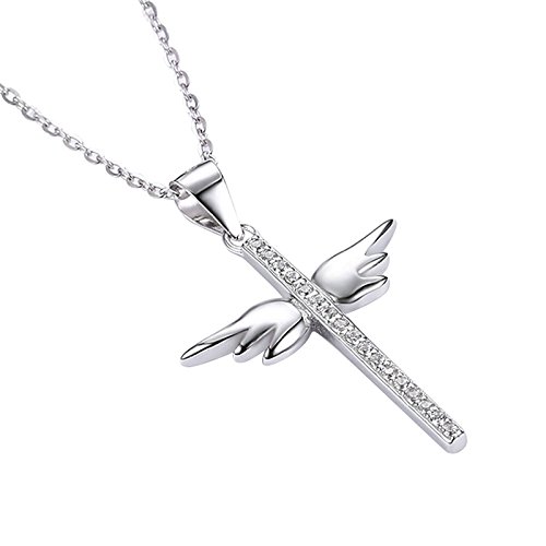 Daesar Argento Placcato Collana per Le Donne Cross Di Angel Wings Zirconi Bianco Catena Lunghezza: 40 + 5 CM
