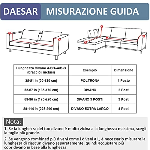 ♥ DIMENSIONE: misura la lunghezza del tuo divano (compresi i braccioli) prima di scegliere. Se la misura è molto vicina alla lunghezza massima, ti consigliamo di scegliere la taglia più grande. Offriamo 4 diverse misure di fodere copridivani elasticizzati: 1 posto (90-130 cm), 2 posti (135-170 cm), 3 posti (175-220 cm), 4 posti (225-290 cm). Scegli la dimensione più adatta in base alle tue misure. Con 1 * federa coordinata gratuita mostrata nell'immagine principale.