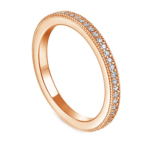 Daesar Fedine Fidanzamento Donna, Anelli 925 Argento Sterling Elegante Eternità 1.2MM Anelli con Zirconi Donna Oro Rosa Misura 17