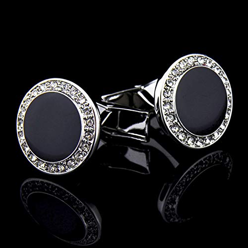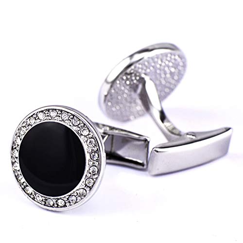 Daesar Gemelli da Giacca Set Gemelli Uomo Gemelli Uomo Zirconi Rotondo Bianco Gemelli Camicia Uomo Argento Nero