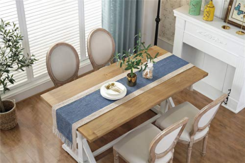 Daesar Tavolo Runner 38x240 CM, Runner Cucina Blu Scuro con Nappa Runner da Tavolo Elegante Runner Tavolo Lino Cotone