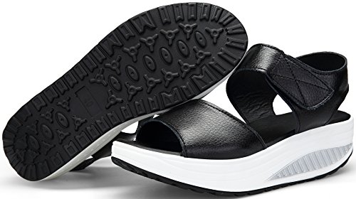 DAFENP Sandali con Zeppa Donna Estivi Comode Cuoio Platform Sandalo Eleganti Plateau Scarpe con Tacco per Camminare LX308-black2-EU38