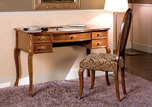 Dafne Italian Design Scrivania Classica, Noce Scuro -cm: 113 cm - 60 cm - H 77 cm ? 0,60 MC - Stile Classico - ? Gambe in massello toulipier - 100% Made in Italy (SF17)