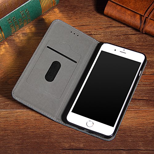 DaGeLon Elegante Custodia per iPhone 8 Plus 7 Plus, Raffinato Pelle Libro Cover Vintage Flip Cassa retrò vestibilità Perfetta Caso Portafoglio Solida Protettivo Antiurto Resistente agli Urti, Nero