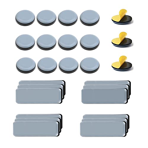 DAGORD 24 Pezzi Scivoli per Mobili Teflon Rotondi 25mm e Rettangolare 19x70mm Piedini per mobili autoadesivo in Teflon PTFE Autoadesivi Cursori di Mobili per Spostare Mobili Pesanti