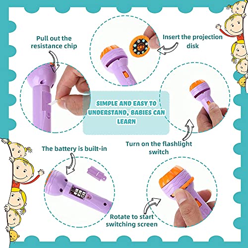 DAGORD 2 Pezzi Torcia Proiettore Storie per Bambini con 80 Immagini Proiettore di Diapositive Torcia Torcia per Proiettore per Bambini Proiettore Torcia Bambini Proiettore di Diapositive Torcia