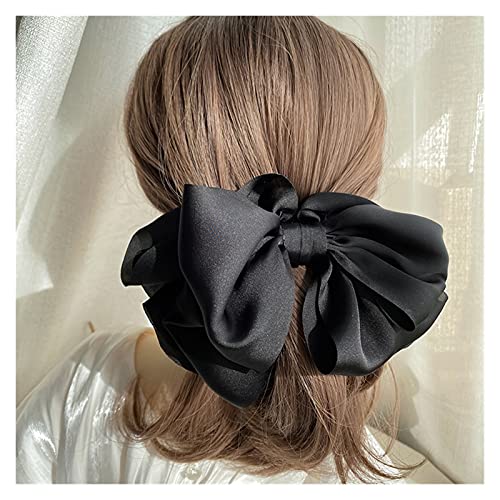 DAHDXD 1 PC Inverno Velluto Bowknot Clip per Capelli Cravatta a Mano Grande fiocina Fiocchi forcina per Le Donne Ragazze Temperamento Satinato Assommenti Eleganti (Color: Black)