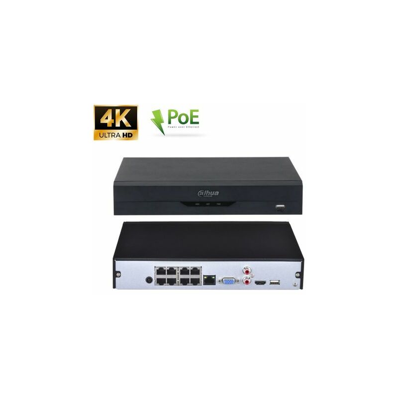 Dahua NVR IP Onvif Poe 8 canali 4k 12Mp 8 porte - NVR2108HS-8P-I2 NVR 4K - 8 canali IP fino a 8Mpx (V.02) Video compressione H.265+/H.265/Smart H.264+/H.264/MJPEG Massima banda 160Mbps 2 uscite video principali (1 VGA + 1 HDMI) 1 ingresso e 1 USCITA AUDIO bidirezionale 4 ingressi e 2 uscite allarmate Predisposto per montaggio di 2 HD SATA (max 8TB) 2 porte USB (mouse, backup) porta RS485 RS232 1 LAN 10/100/1000 Mbps Alimentazione DC12V/4A