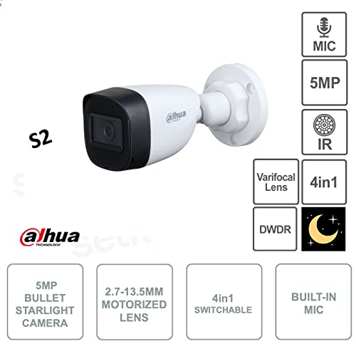 DAHUA Telecamera 5 Mpx da Esterno Motorizzata Con Fili 5mp Hdcvi 4in1 Hdtvi Ahd Analogica audio