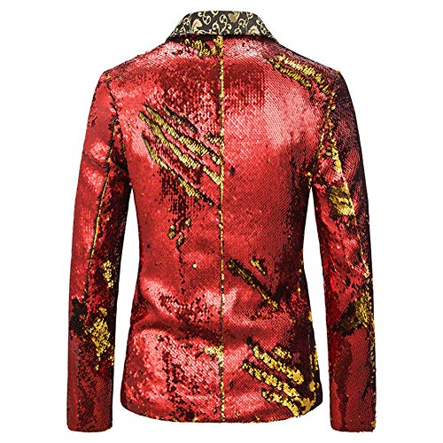 DaiHan Uomo Blazer Classic Brillantini con Paillettes Giacca da Abito Elegante Fiesta A Maniche Lunghe Cappotto Rosso S