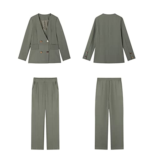 DAIHAN Donne Ufficio 2 Pezzi Pantaloni Vestito Classico Business Blazer Slim Fit Formale Cappotto a Maniche Lunghe Giacca da Lavoro Pantaloni Ufficio E Lavoro,Verde,M