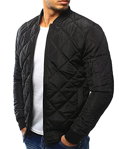 Tinta unita, zip integrale, girocollo, vestibilità slim, design trapuntato a rombi, 1 tasca sul braccio, 2 tasche laterali, polsini e orlo elasticizzati. Design semplice ma classico, la giacca trapuntata con diamanti Bomber da uomo ti rende più speciale e bello tra la folla.