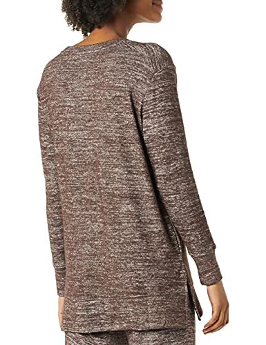 Daily Ritual Tunica Girocollo con Spacco Laterale a Maniche Lunghe con vestibilità Comoda in Maglia Morbida Donna, Cioccolato mélange, XL