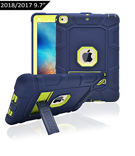 Dailylux Custodia Nuovo iPad 2017/2018,Custodia in 3 Strati di Morbido Silicone con Kickstand per Nuovo iPad 9.7 Pollici 2017/2018(A1822/A1823/A1893/A1954)-Blu Navy + Limone