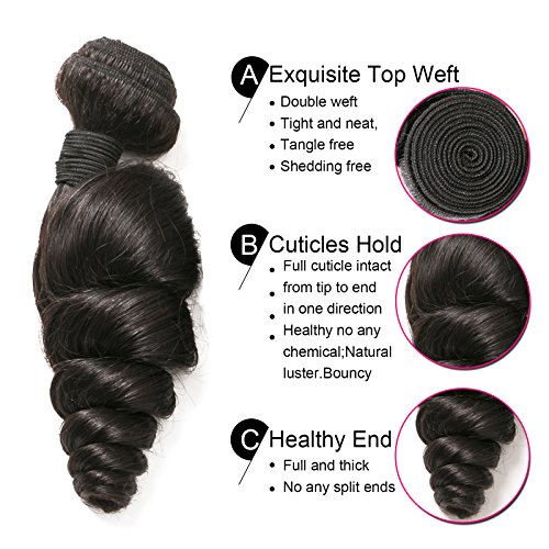 DAIMER Ear to Ear Lace Frontal Free Part 4x13 Closure with 3 Bundles Brazilian Loose Wave Hair Weave 100 Human Hair Extension 14 16 18 +12 Frontal