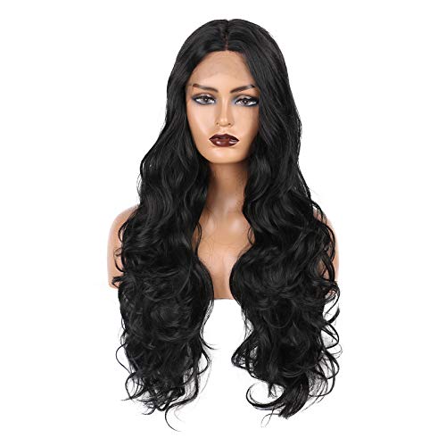 DaiMer T part Synthetic Lace Front Wigs Black Color Long Body Wave Curly Wig With Natural Hairline Deep Middle Part Deep Lace Hair Wigs for Women Daily Party Wigs 26inch(#1B)