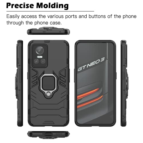 DAINA Cover + [2 Pezzi] Vetro Temperato per Oppo Realme GT Neo 3, TPU/PC Dual Layer Armor Antiurto Protezione Custodia [360° Supporto] con Durezza 9H Pellicola Protettiva, Nero