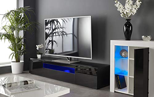 Mobile TV nero lucido per TV fino a 80 pollici con luci a LED