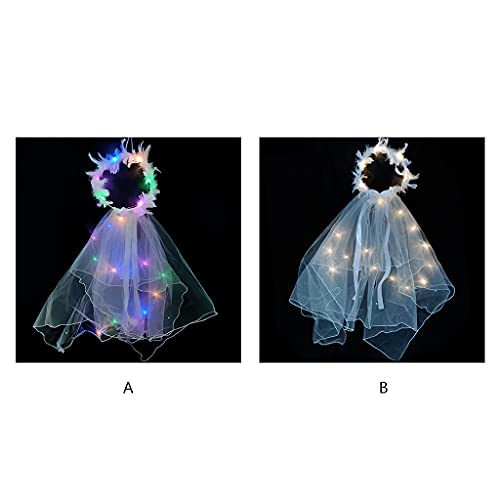 DAISHIAO Corona di piume Velo da sposa copricapo con luci a LED in pizzo velo nastro archi copricapo foto accessori