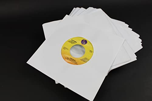 MC DAISON 100 BUSTINE in Carta Bianca forate + VELINA AntiGraffio ANTISTATICA per Dischi Vinile 7" 45 Giri RPM Singoli Diametro 18 cm