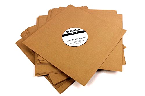 MC DAISON 25 pezzi Busta Copertina DELUXE custodia interna protettiva antigraffio di alta qualità in carta Kraft marrone avana con fori per dischi in vinile formato LP 33 giri e 12" mix (diam. 30 cm)