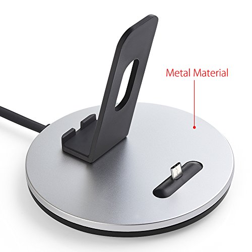 Daite Caricatore Porta Tipo C e Stazione di carica sincronizzata con cavo USB reversibile all'interno da 2.9ft & Supporto antiscivolo per telefono (Argento)