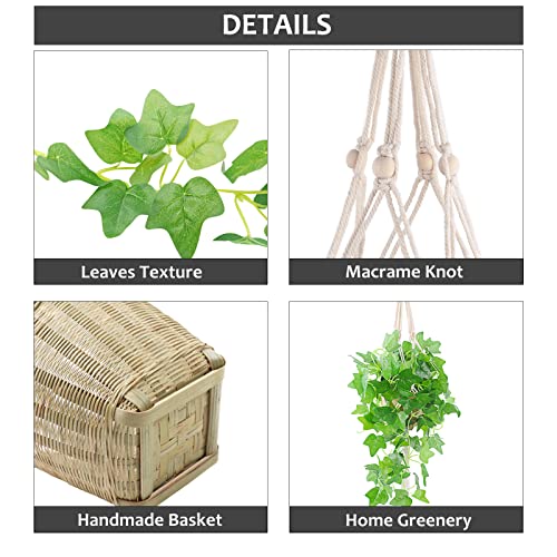 DaizySight Piante Artificiali da Interno Rampicanti con Vaso, 2 Pacchetto di Piante Finte da Esterno Pendenti per Soggiorno, Patio, Valcone, con Cesti e Macramè Portavasi