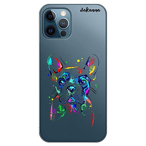 Dakanna Custodia Compatibili con [ iPhone 12 Pro Max ] sfondo Trasparente con Disegni [ Cane Bulldog Francese Watercolor ] in Morbida Silicone TPU Flessibile, Shell Case Cover in Gel per Smartphone