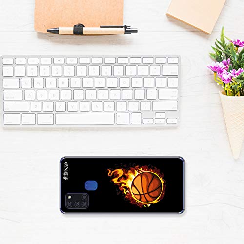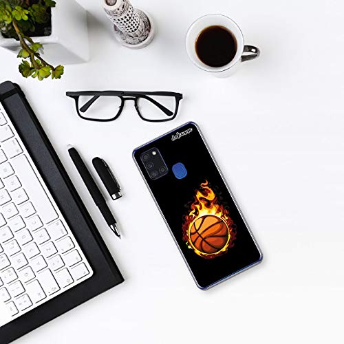 Dakanna Custodia Compatibili con [ Samsung Galaxy A21s ] Trasparente con Disegni [ Peallone di Basket in Fiamme ] in Morbida Silicone TPU Flessibile, Shell Case Cover in Gel per Smartphone