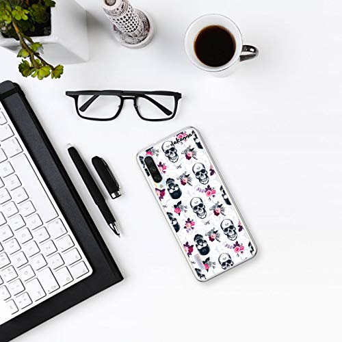 Dakanna Custodia Compatibili con [Xiaomi Mi A3] Trasparente con Disegni [Modello di Fiori e Teschi] in Morbida Silicone TPU Flessibile, Shell Case Cover in Gel per Smartphone
