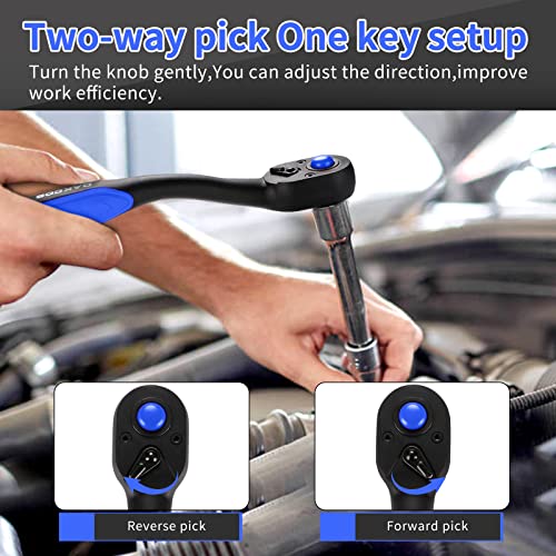 DAKCOS 1/4 "Drive Ratchet 72 denti Quick Release Socket Chiave Maniglia Cromo Vanadio Acciaio