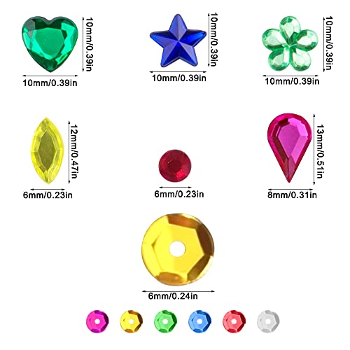 DaKuan 20.000 Paillettes sfuse da 6 mm e 600 pezzi gemme artigianali gioielli strass acrilico a retro piatto, pietre preziose per fai da te artigianato creazione di gioielli, 6-13 mm